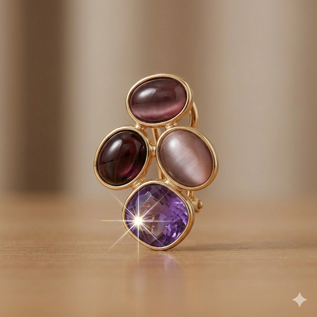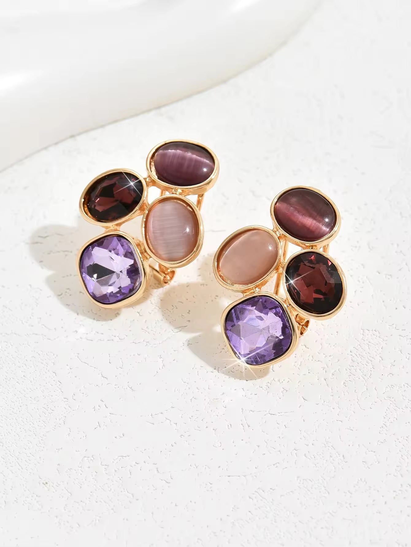Beautiful shades of purple cat eye earrings with a mesmerizing glow, crafted with a comfortable silver needle for sensitive ears. Perfect for adding a touch of elegance and charm to both everyday and evening looks.
