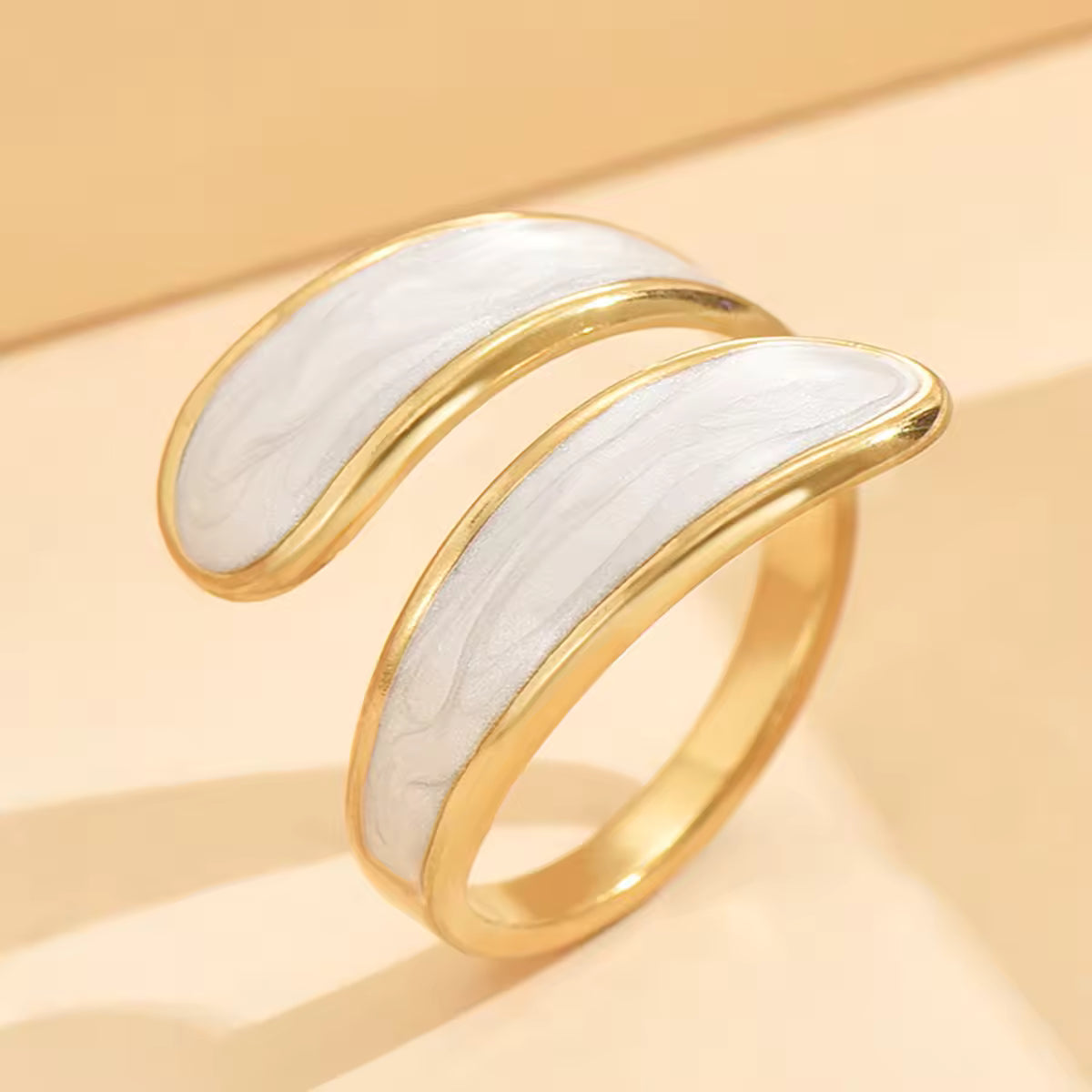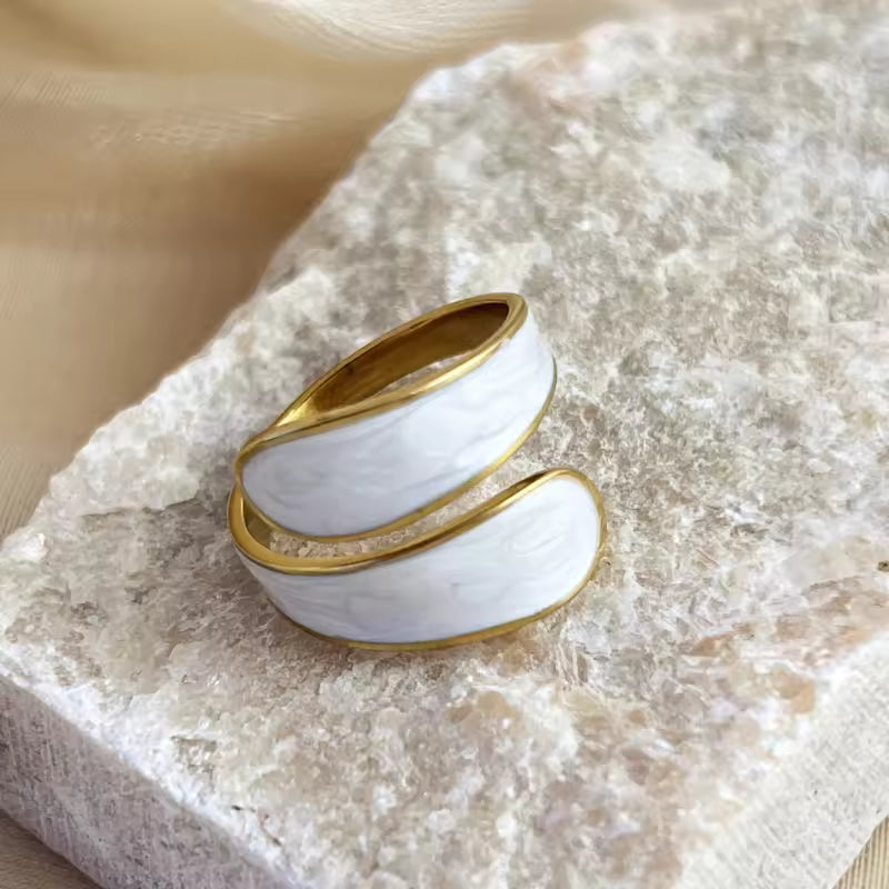 A chic white double-layer ring that blends minimal elegance with modern design. Perfect for everyday wear, its layered style adds a soft, sophisticated touch to any outfit.